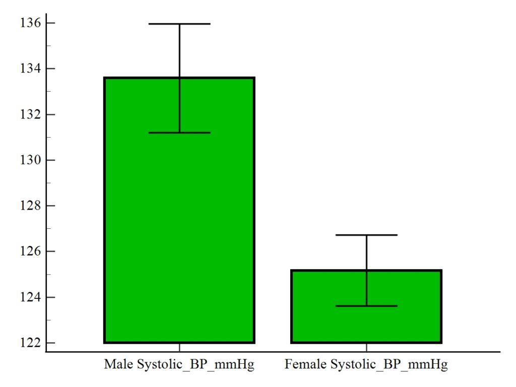 The analysis revealed that males have a significantly higher mean systolic blood pressure than females, with a mean difference of approximately 8.4 mmHg. This result is both statistically robust and clinically meaningful.