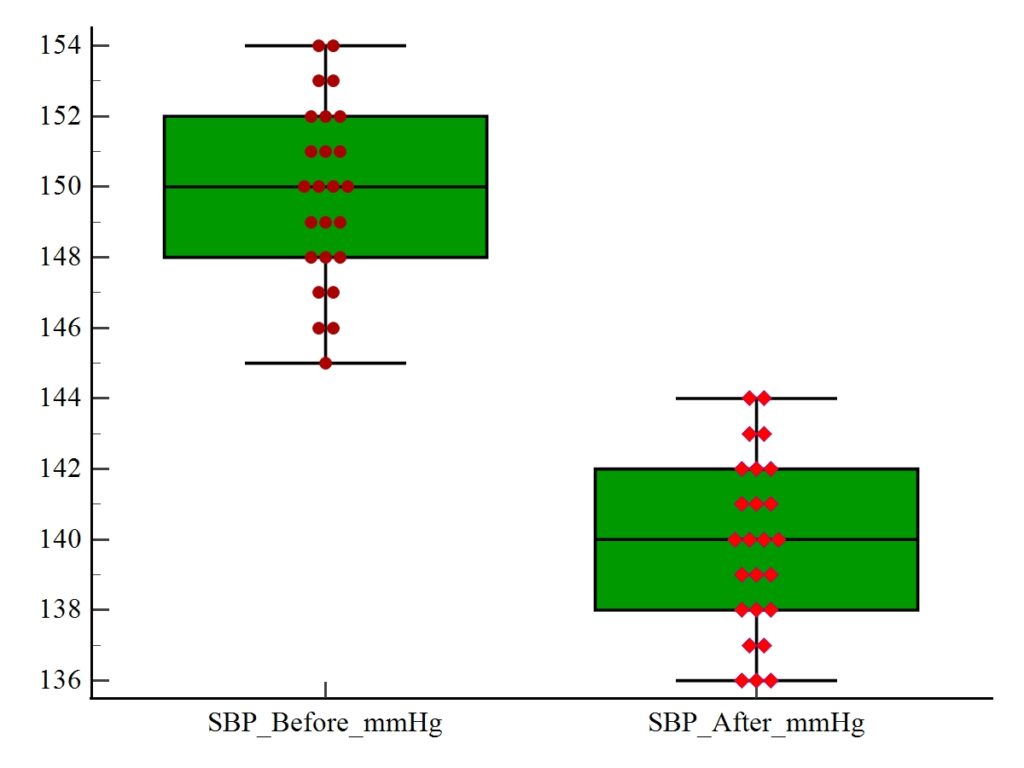 | Parameter | SBP Before (mmHg) | SBP After (mmHg) |