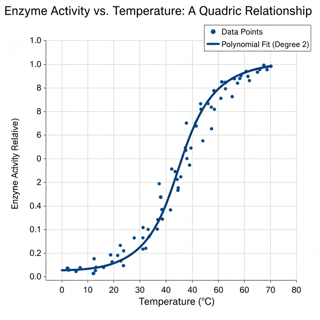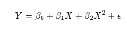 Here, Y is the dependent variable, X the independent variable, and the coefficients (β0,β1,β2) describe the curve’s position and shape.